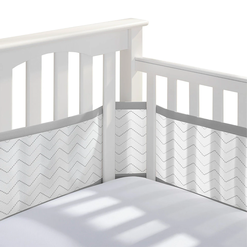 El forro de malla transpirableTM original con millones vendidos desde 2002. A diferencia de los bumpers acolchados, nuestros revestimientos de malla mantienen las pequeñas extremidades de forma segura en el interior sin el riesgo de un flujo de aire restringido. BreathableBaby se trata de ayudar a los cuidadores a sentirse seguros y en control, ¡y a dormir un poco!