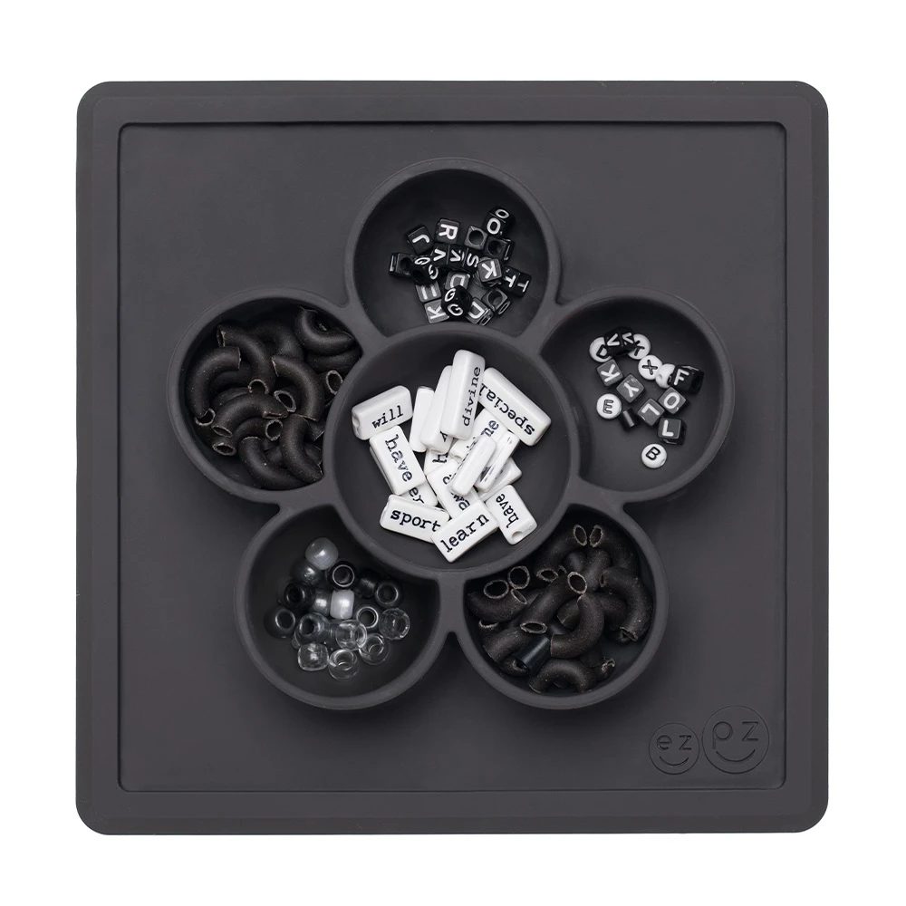 El Mini Play Mat es un tapete todo en uno + compartimentos de flores que ayuda con la pintura, la clasificación, el trabajo de abalorios y otras manualidades. Se adhiere directamente a cualquier superficie plana, lo que dificulta que las manos “artesanales” vuelquen sus pinturas, brillantina y cuentas.