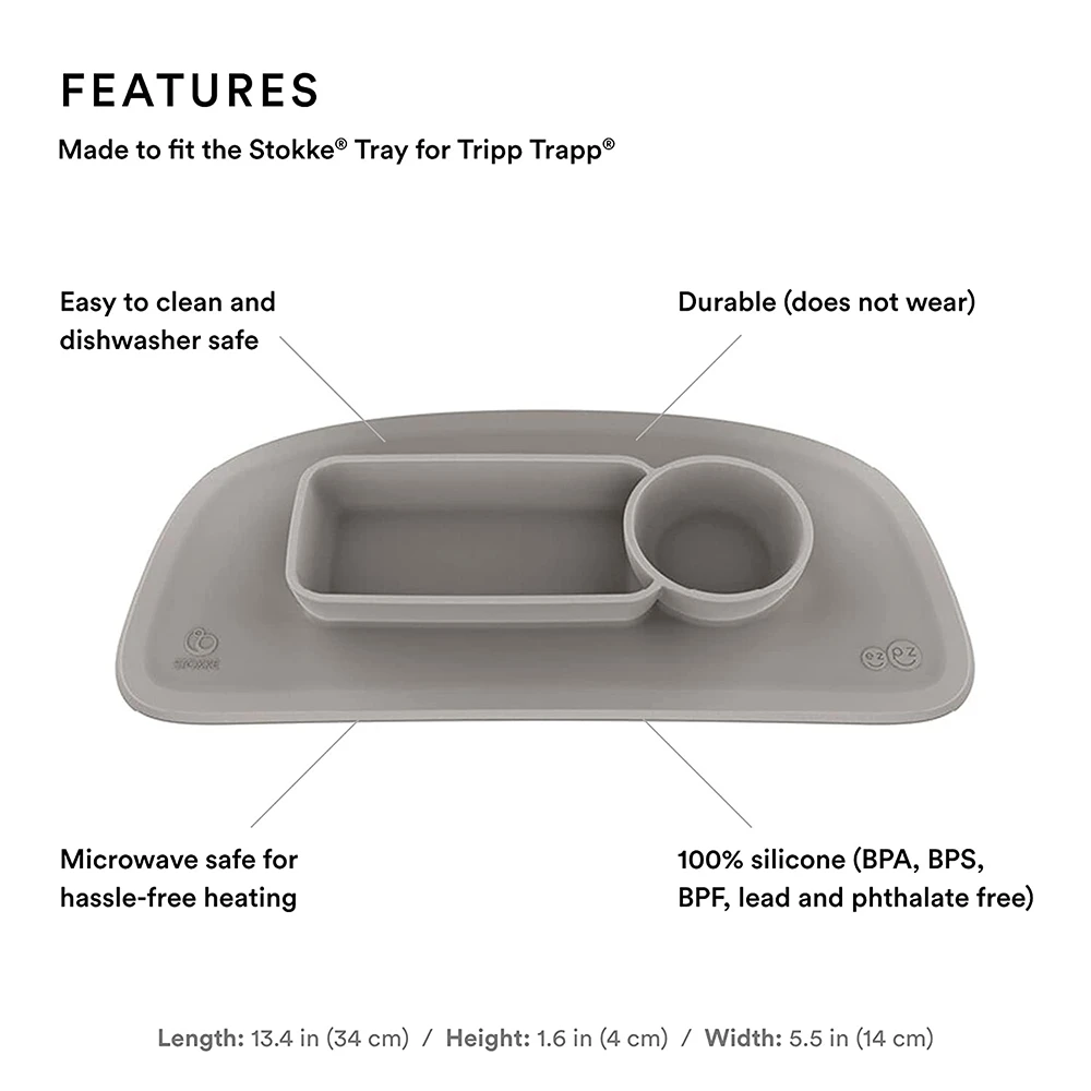 El Placemat ezpz™ de Stokke™ es un mantel individual y cuencos todo en uno que están hechos para adaptarse a la bandeja Stokke® para Tripp Trapp®. La funcionalidad única significa que se mantiene en su lugar para contener esos líos inevitables a la hora de las comidas y evita los tazones y platos inclinados. Esto no solo es más ordenado, hace que sea más fácil para tu pequeño aprender a alimentarse a sí mismo. Hecho de silicona de calidad alimentaria de alta calidad, es fuerte, duradero y fácil de limpiar en el lavavajillas.