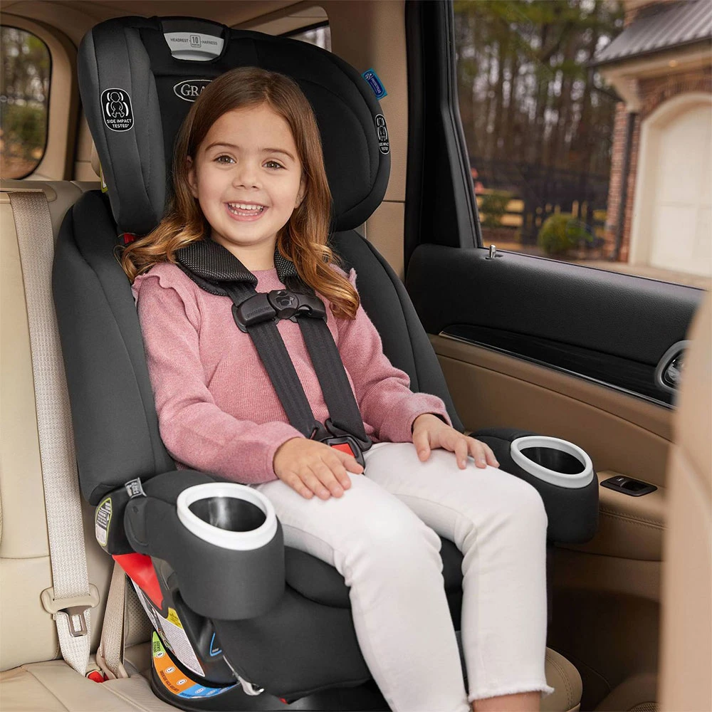 Niños hasta las 100 lbs con booster respaldo alto con arnés del auto.