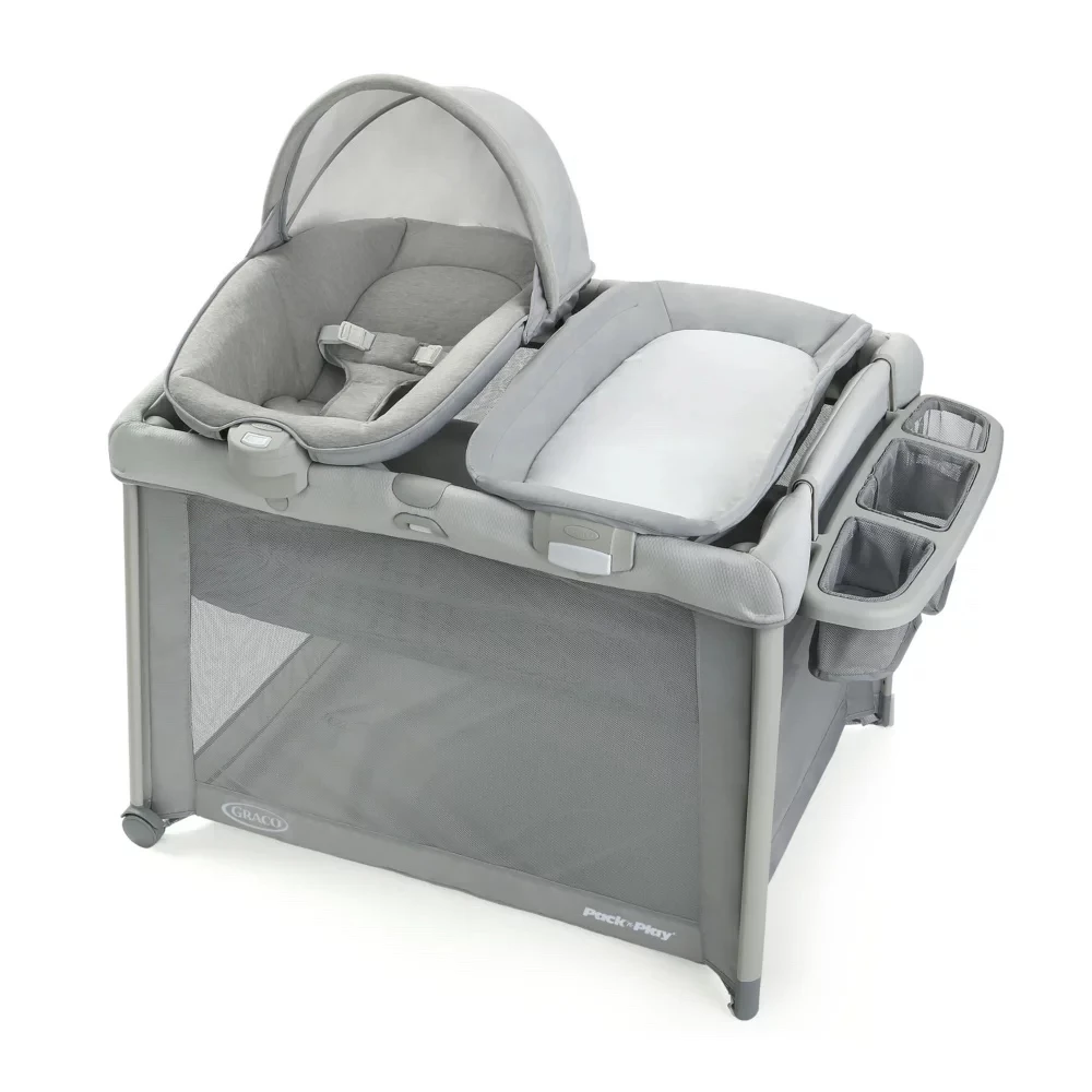 Su diseño simple y moderno y su paleta de colores neutros lo convierten en el complemento perfecto para su registro minimalista de bebés. El playard también incluye un asiento portátil, un cambiador de pañales y un almacenamiento para lo esencial para el bebé.