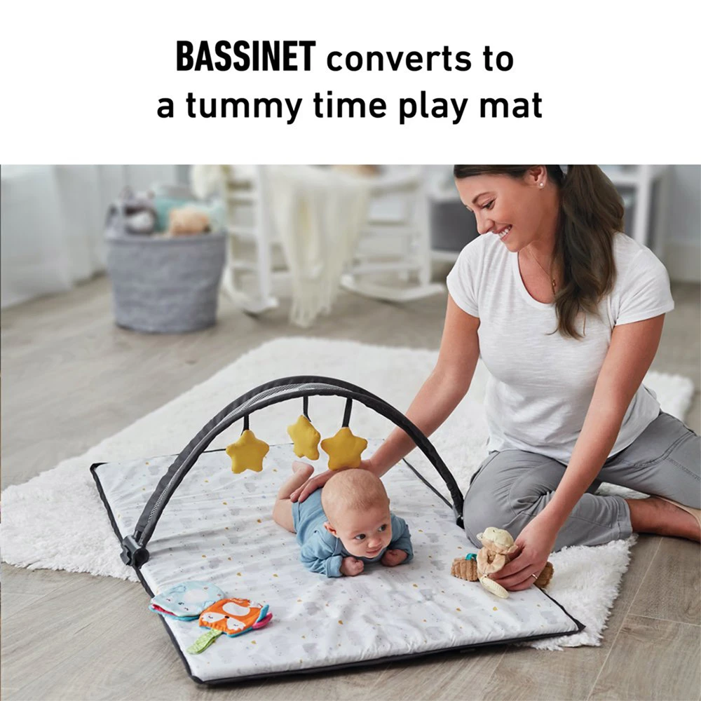 El Pack ‘n Play® Playard Anywhere Dreamer ™ de Graco cuenta con un moisés extraíble que se puede usar dentro o fuera del patio de juegos para que pueda mantener al bebé a su lado en cualquier habitación. Cuando se usa fuera del corralito, el moisés se convierte fácilmente para convertirse en una alfombra de juego boca abajo con una barra de juguetes incluida para entretener al bebé. Este patio de juegos para bebés también incluye un cambiador de pañales, almacenamiento para lo esencial, modo de corralito para niños pequeños, ruedas para fácil transporte y el exclusivo pliegue con botón de presión de Graco. Con Anywhere Dreamer ™ de Graco, el bebé puede dormir, soñar y jugar en cualquier lugar.