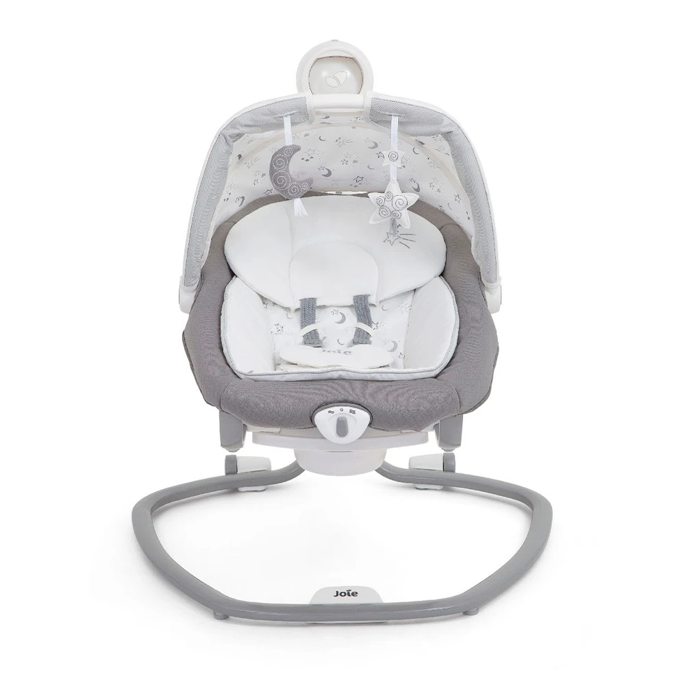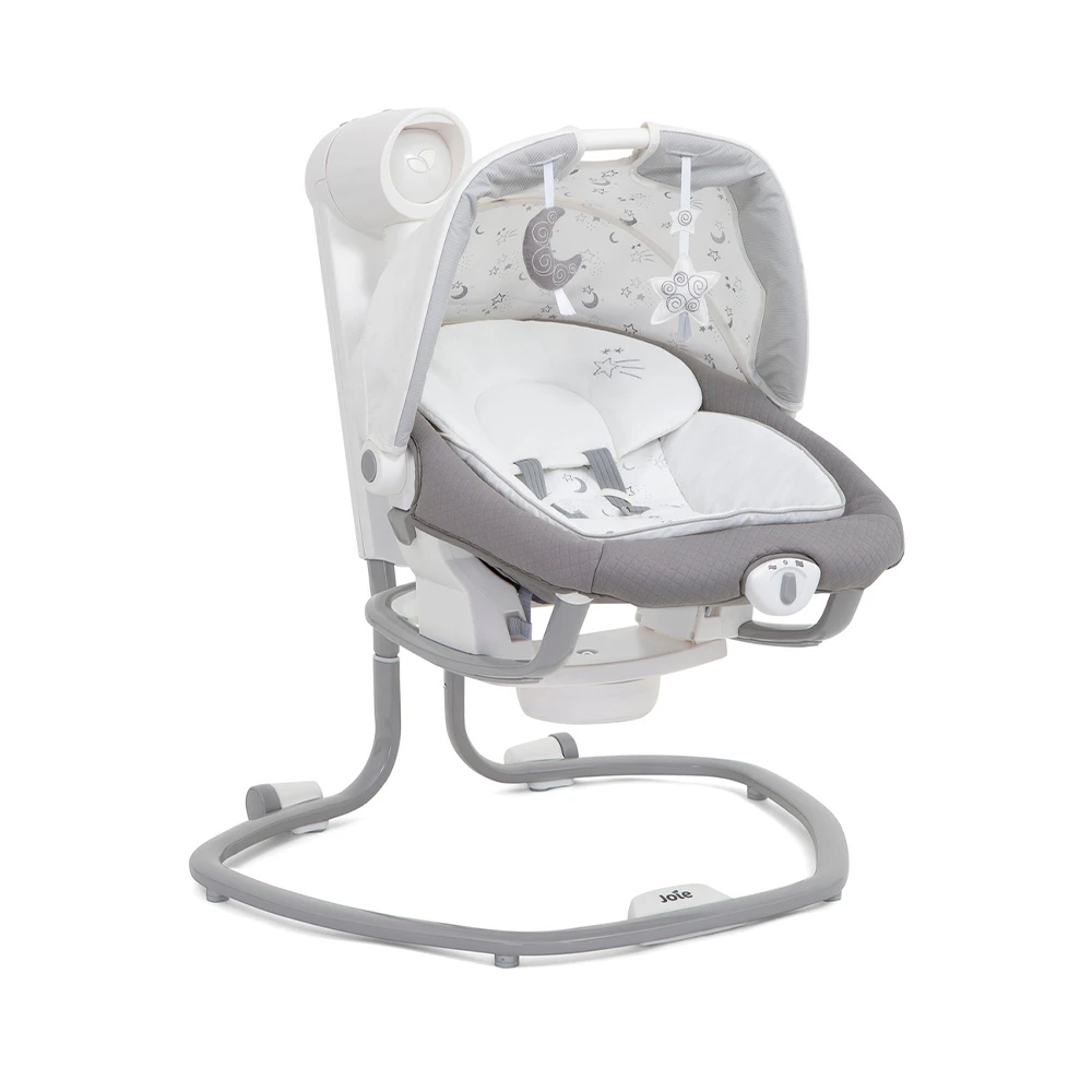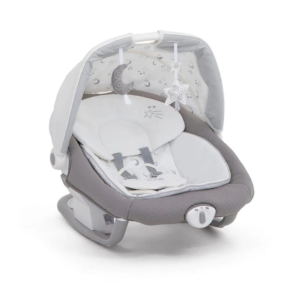 5 melodías clásicas y 5 sonidos de la naturaleza se unen a la vibración y el reclinado en 3 posiciones para calmar al bebé mientras se mece