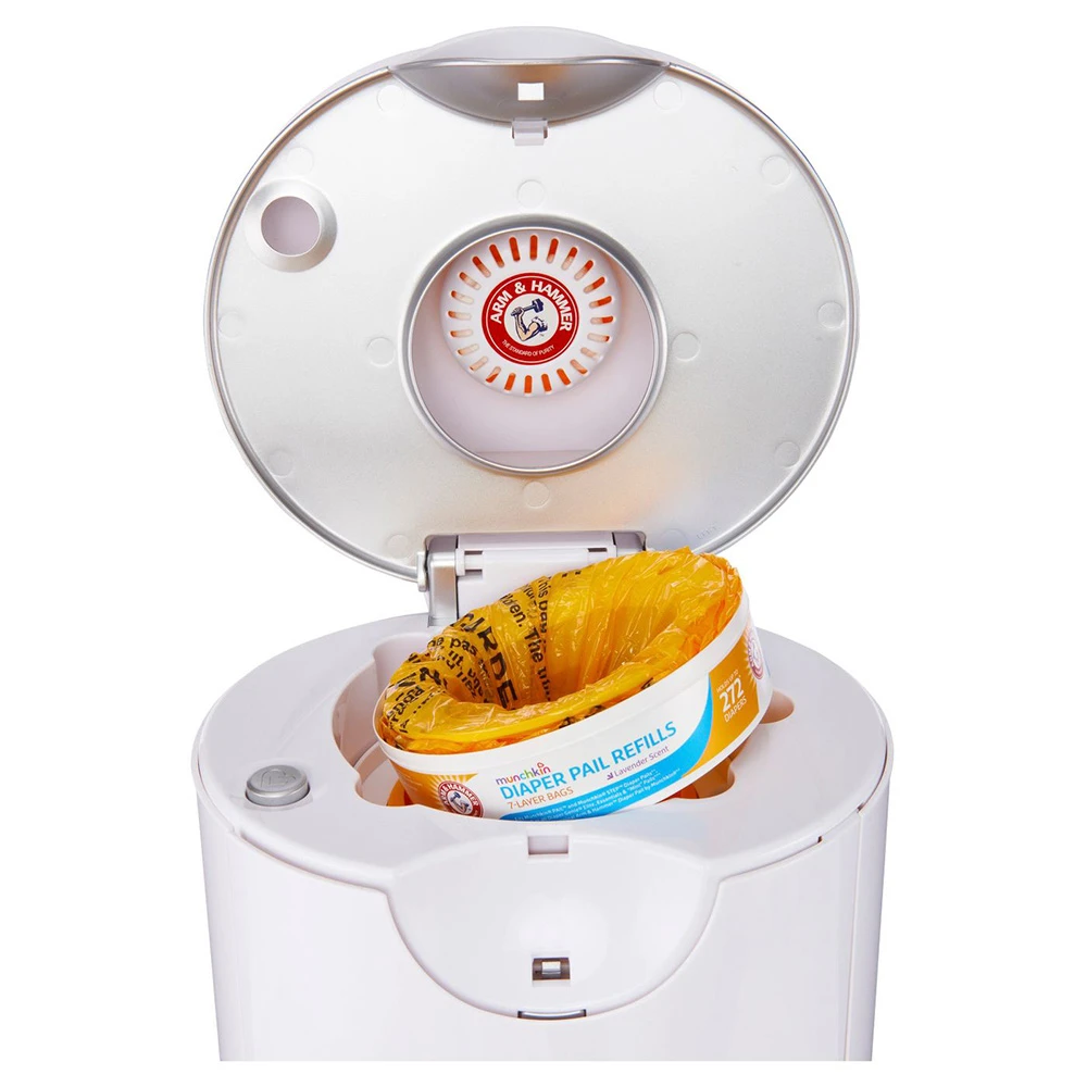 El cubo de pañales Arm & Hammer de Munchkin combina el mejor control de olores de su clase con una estética moderna y elegante que se verá genial en cualquier vivero. Munchkin’s Diaper Pail se basa en el poder probado a lo largo del bicarbonato de sodio con aroma a lavanda, que absorbe ese temido olor a pañal sucio. Cada vez que inserta un pañal, la tapa autosellante patentada bloquea la bolsa, manteniendo el olor sellado. Una vez que vuelvas a abrir, ya no habrá esa explosión familiar de aire asqueroso emitido por otros cubos. Los anillos y bolsas de recarga de eliminación son fáciles de encajar en su lugar, mientras que la puerta lateral permite una extracción rápida y conveniente. El disco de bicarbonato de sodio ventilado y perfumado con lavanda absorbe y elimina continuamente los olores incluso cuando el cubo de pañales no está en uso. Las recargas adicionales se venden por separado. Por CADA cubo de pañales vendido, Munchkin plantará un árbol para ayudar a que nuestro entorno sea un mejor lugar para vivir.
