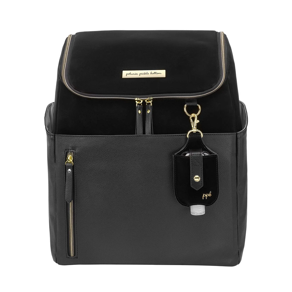 • Anillo en D en la parte delantera para sujetar el soporte del desinfectante de manos (incluido), tus llaves o un amuleto de bolsa favorito