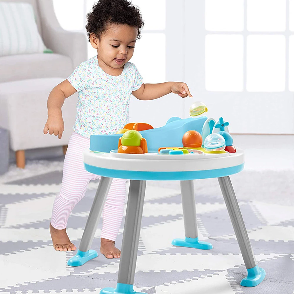 Los más pequeños se lo pasarán en grande con esta mesa de actividades interactiva. Con dos etapas de juego para bebés y niños pequeños, además de 20 actividades de desarrollo, a los niños les encantará agarrar, balancear y rodar ocho bonitas y coloridas bolas. Un piano iluminado, un tobogán giratorio y más funciones asombrosas se suman a la diversión llena de acción.
