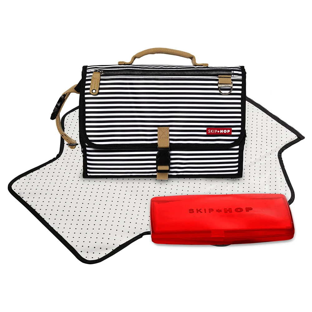 La herramienta definitiva para cambiar pañales hace que el cambio de bebé sea fácil, sin importar dónde se encuentre. El embrague ultraconveniente cuenta con un cambiador limpio con cremallera y un estuche de toallitas translúcidas para recargas oportunas. El gran bolsillo de malla tiene capacidad para cuatro pañales más cremas y otros artículos esenciales, mientras que el bolsillo frontal con cremallera es perfecto para llaves, teléfonos celulares u otros artículos personales. ¡Simplemente deja caer el Pronto en tu bolso, atalo a tu muñeca o colócalo en tu cochecito y listo!