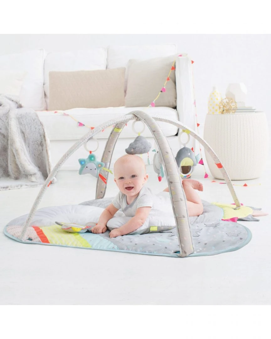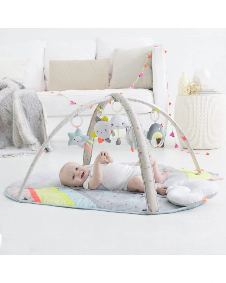 ¡Cada nube tiene un lado positivo y este gimnasio de actividad para bebés de ensueño no es una excepción! Ofreciendo horas de tiempo de juego lujoso, el gimnasio Silver Lining Cloud presenta una paleta de colores suaves para complementar la decoración moderna junto con toques de colores brillantes para estimular la vista del bebé. Cinco juguetes colgantes con temas celestiales atraerán al bebé con luces, música y otros estímulos, mientras que la cómoda alfombra ofrece la máxima comodidad similar a una nube. Cuando se trata del disfrute del bebé, ¡el cielo es el límite!