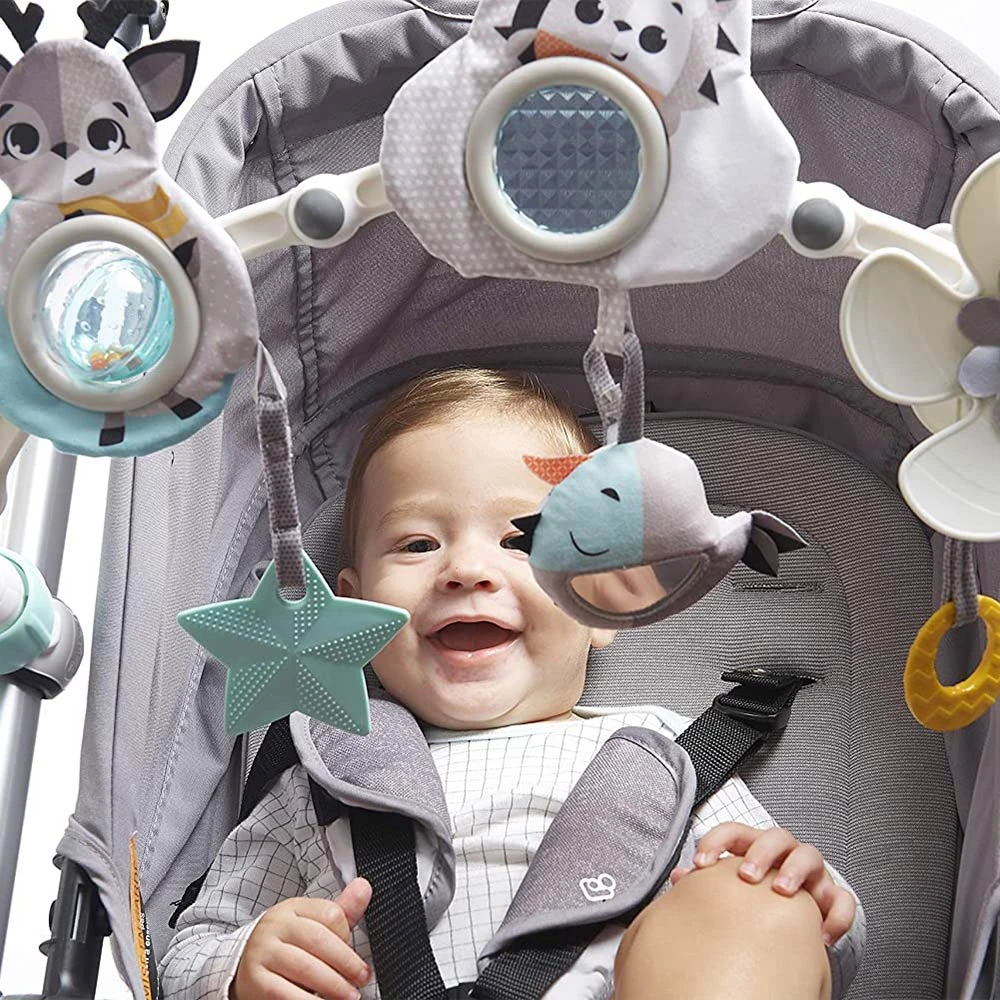 El arco Magical Tales Sunny Stroll está diseñado para dos etapas de desarrollo y proporciona a los bebés oportunidades de entretenimiento y desarrollo, ¡dondequiera que vaya! Durante los primeros 5 meses, el bebé bate en los juguetes, impulsando la exploración sensorial; a los más de 5 meses, el bebé comienza a tirar y sostener, explorando el arco de una manera más sofisticada.