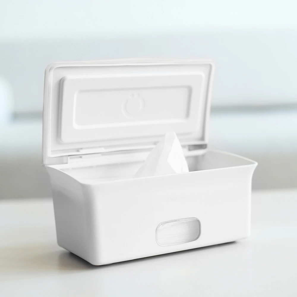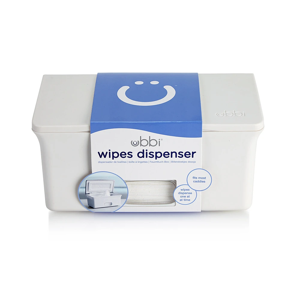 El dispensador de toallitas húmedas Ubbi está diseñado para facilitar el cambio de pañales, lo que permite que los padres tomen una toallita a la vez. Construido para almacenar un paquete estándar de toallitas, incluidas toallitas de tela, el dispensador de toallitas Ubbi se adapta perfectamente a la mayoría de los caddies de pañales. El dispensador está equipado con patas antideslizantes, un sello de goma que mantiene las toallitas frescas y húmedas, así como una ventana transparente que permite al usuario controlar la cantidad de toallitas que quedan.
