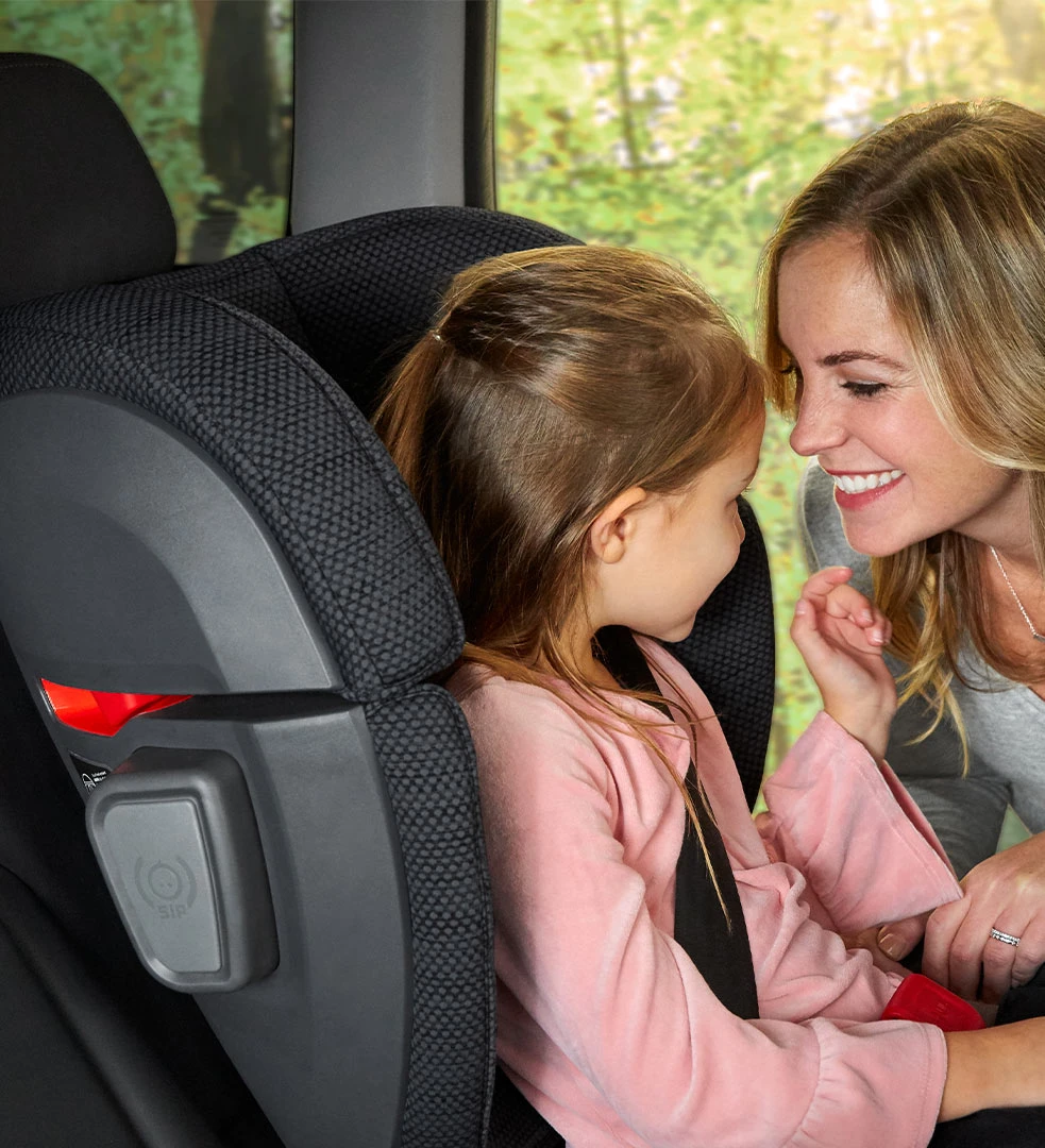 Con sistema de posicionamiento del cinturón SecureFit™ con indicador de cinturón de regazo asegura un ajuste adecuado para el mismo y también para el hombro mientras evita el deslizamiento.