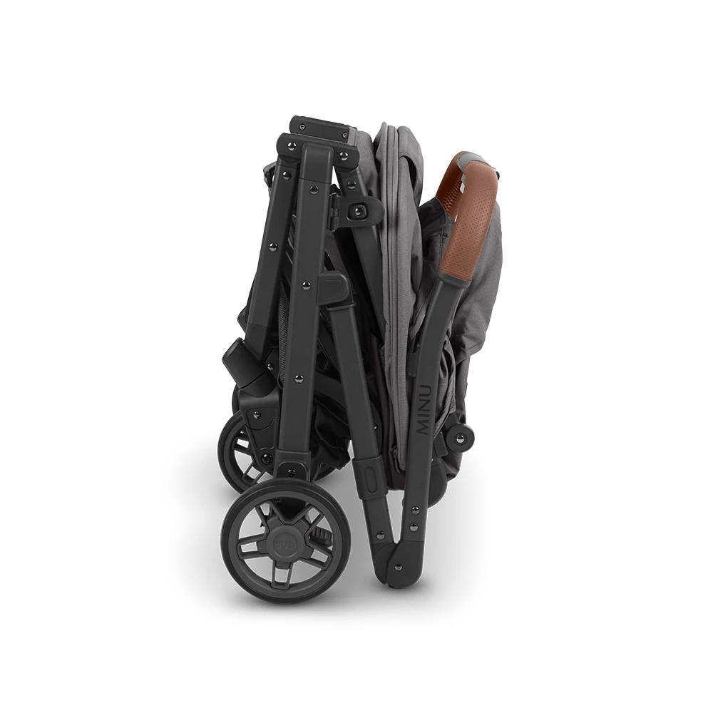 ¡Una mano y un movimiento suave son todo lo que se necesita para doblar completamente el MINU! Incluso puedes sostener al bebé en el otro brazo mientras doblas el cochecito.